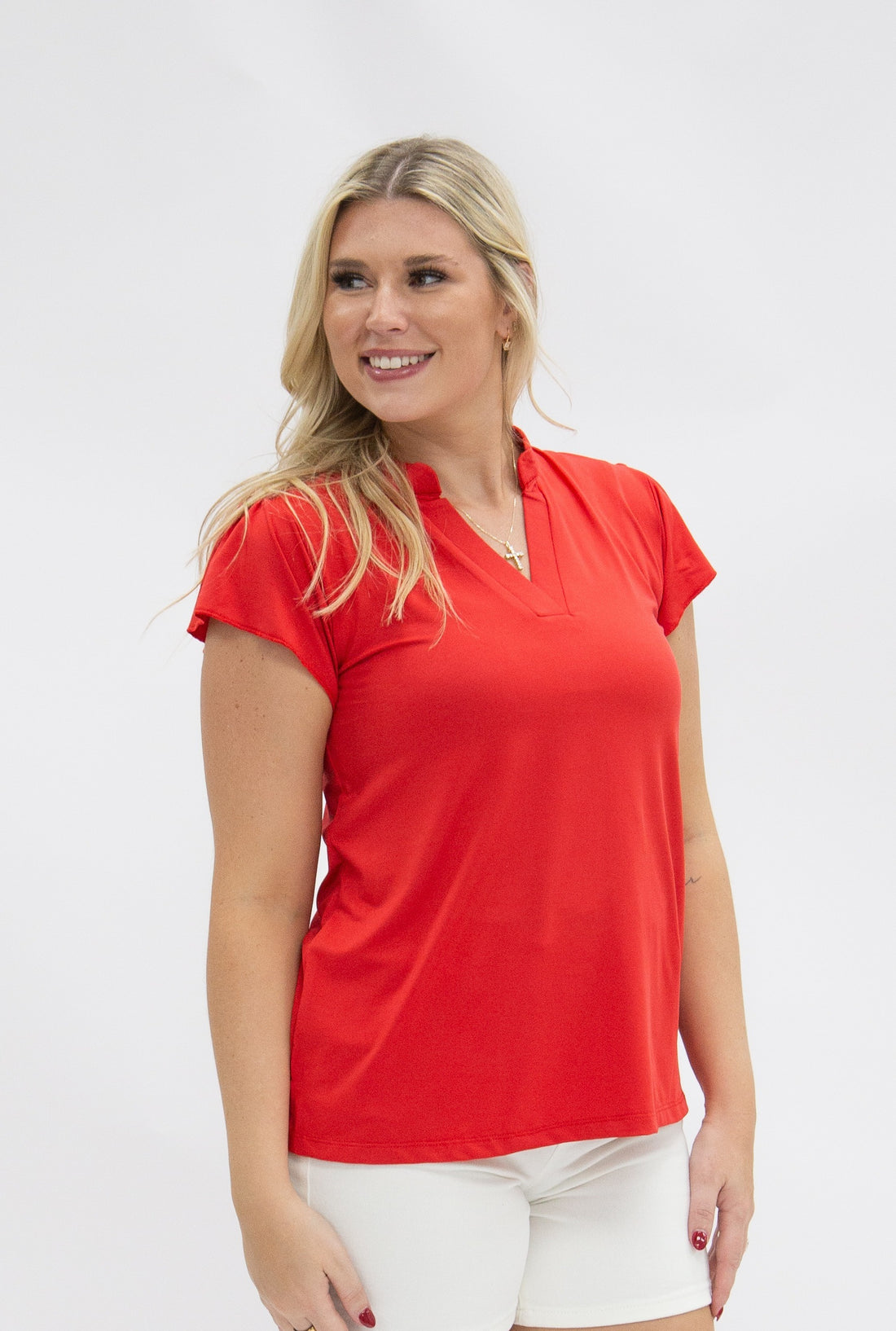 The Nicole V-Neck Top, Red