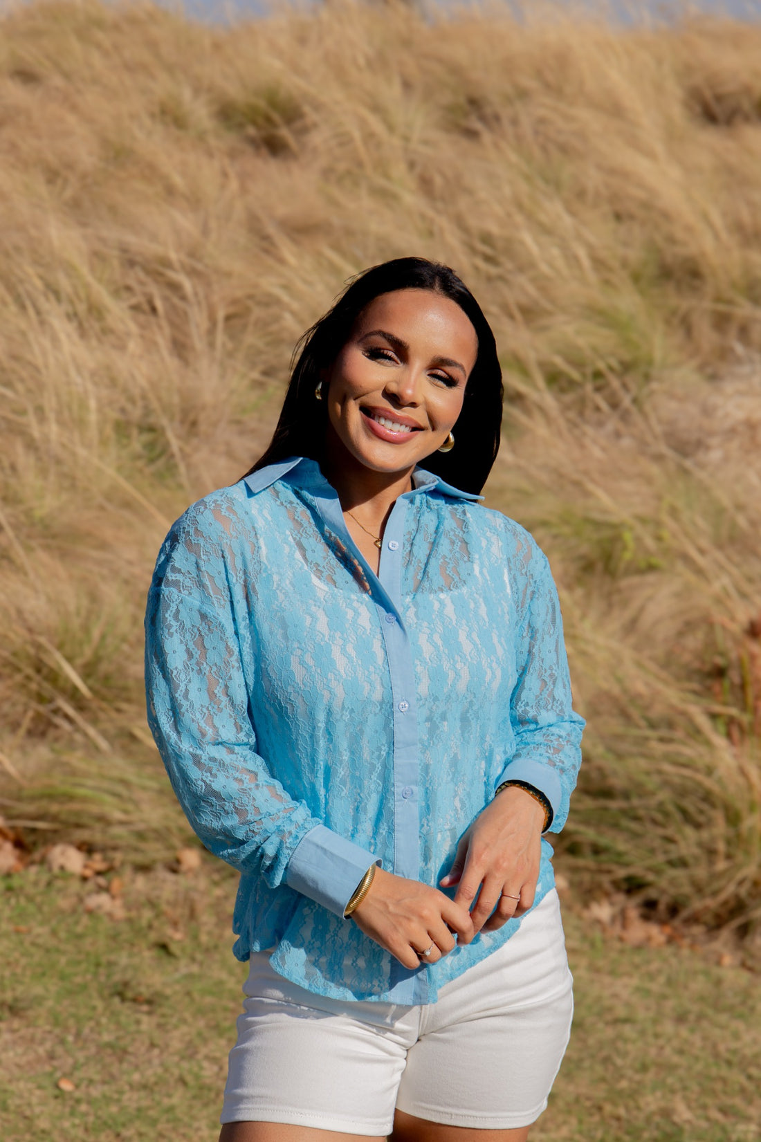 Kathryn Classic Button-Up, Blue Lace
