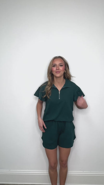 Crafted with high-stretch fabric, this quarter zip offers a relaxed fit that moves with you. The zipper closure allows for adjustable coverage, while the sleeves are designed with slight flexibility to drape over the shoulder and upper arm.