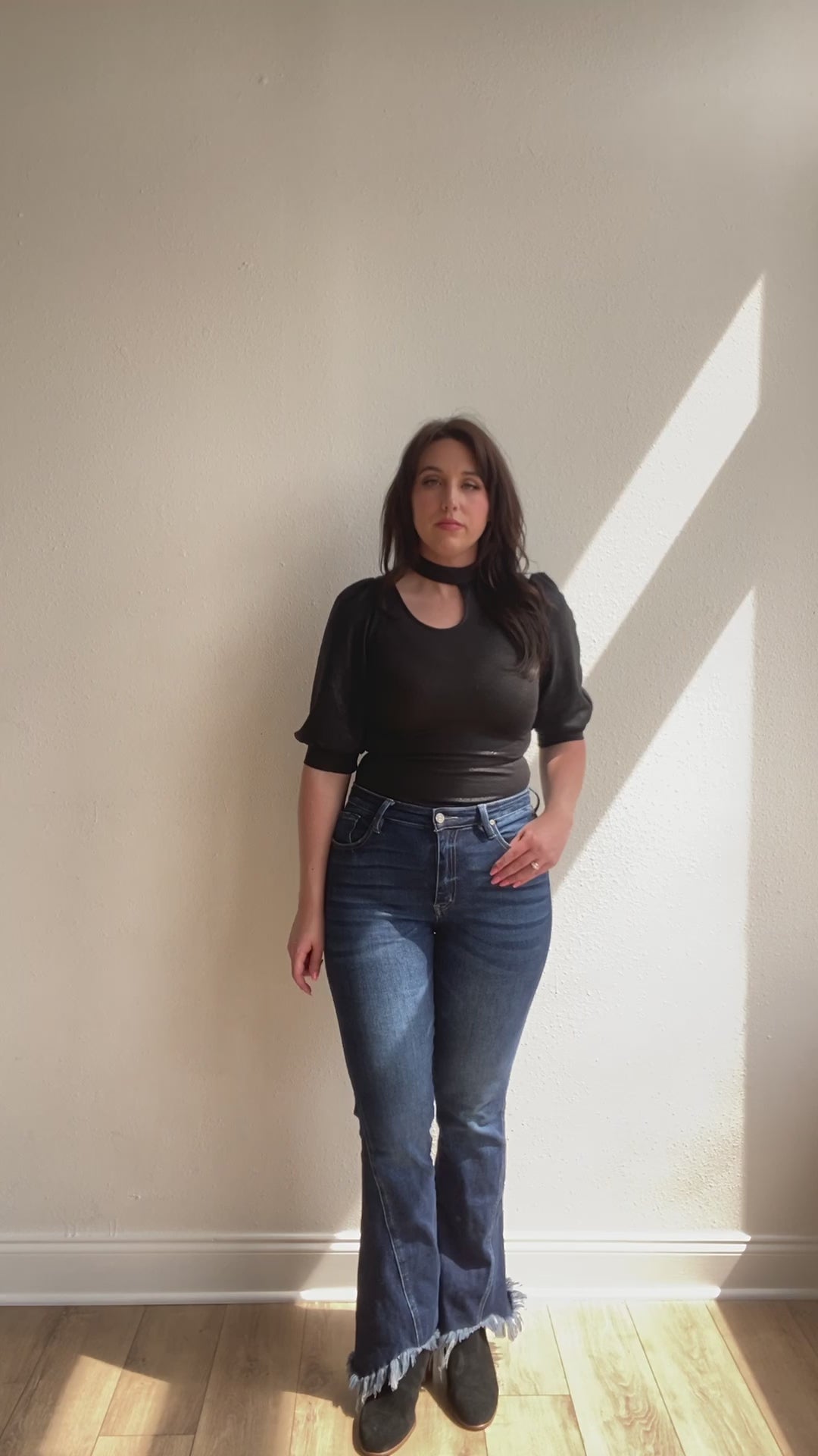 Chic Noir Cutout Bodysuit and Puff Sleeve