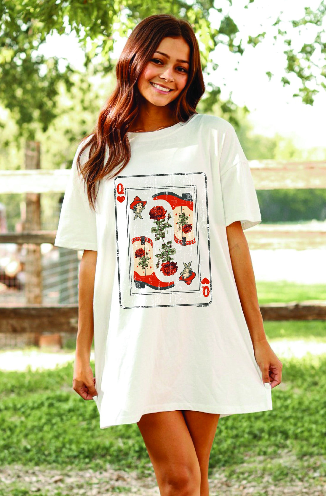 Make a bold statement with our Queen of Hearts White T-Shirt Dress. Featuring an oversized...