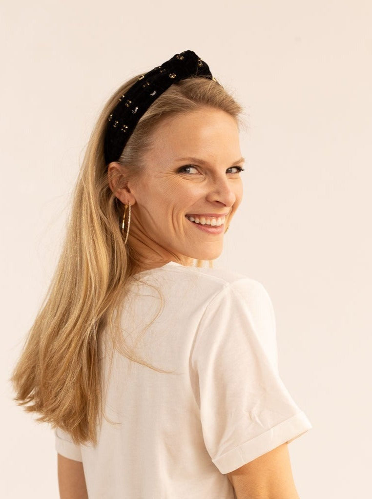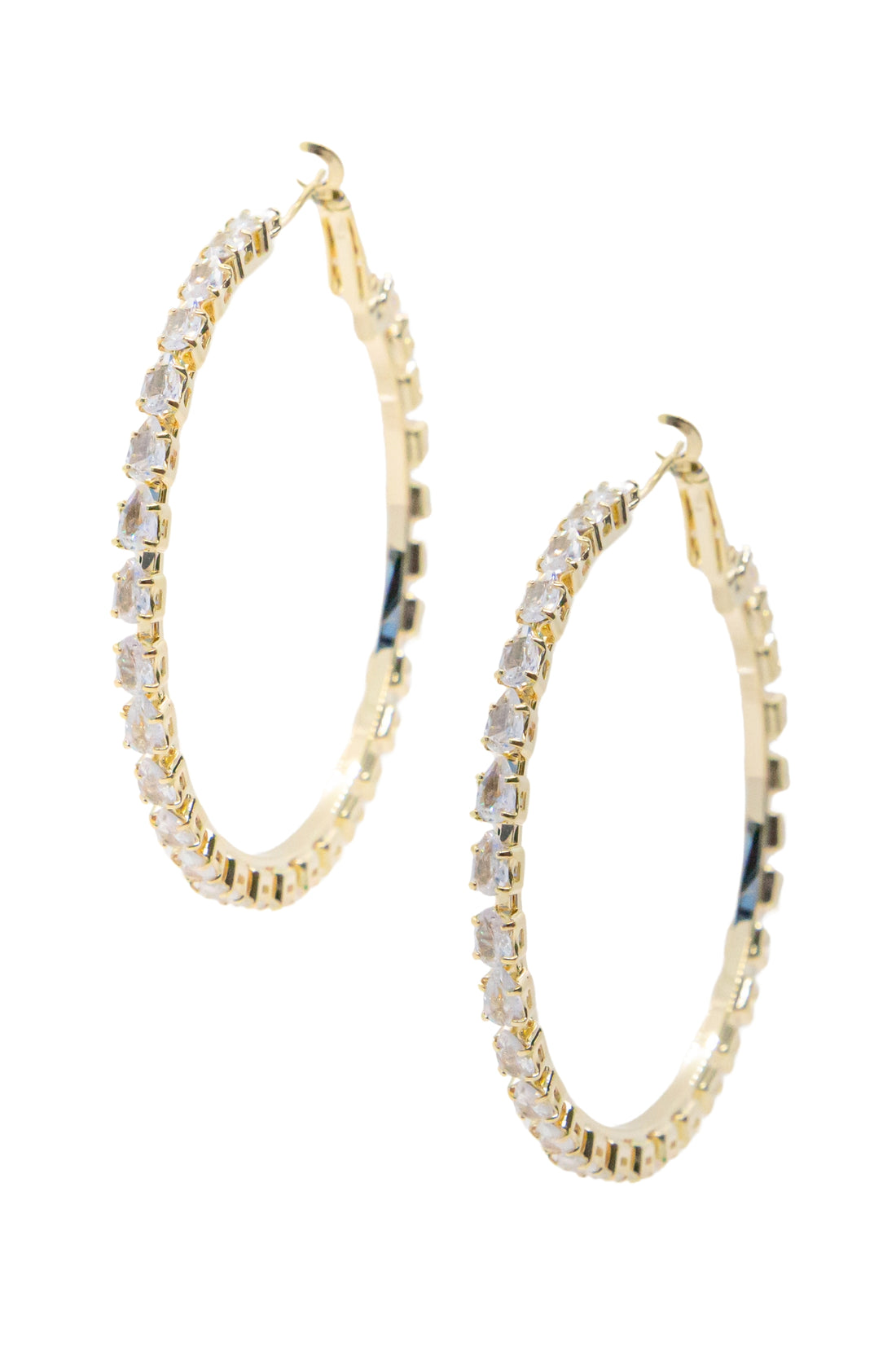 LET'S GO GIRLS BLACK CRYSTAL HOOP EARRINGS