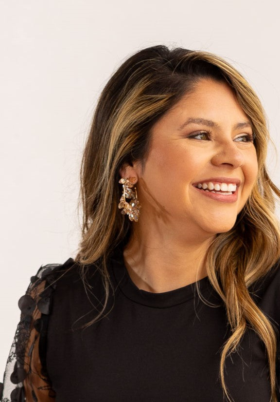Champagne Blossom Hoops by Grace and Emma: Effortlessly elegant floral-inspired hoops, designed to add a...