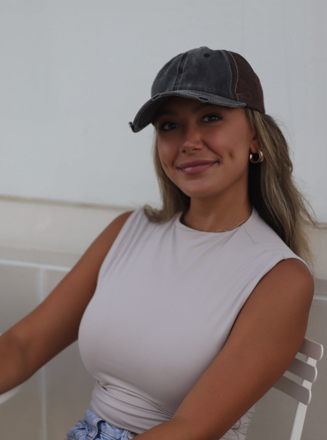 High Ponytail Dark Red Hat with Dark Red Mesh