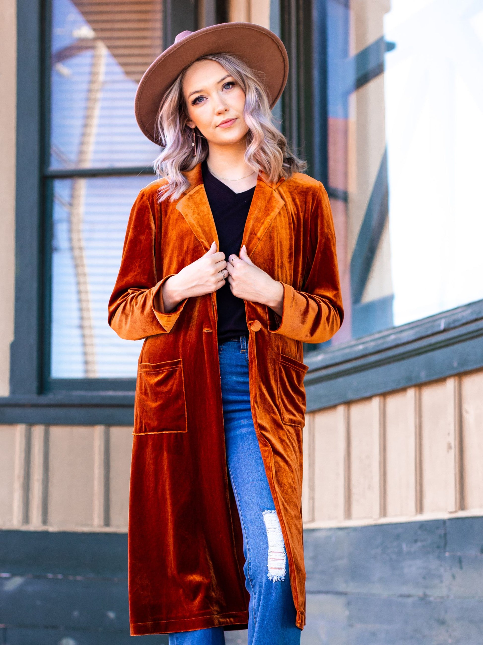 Made to Mingle Velvet Jacket in Rust