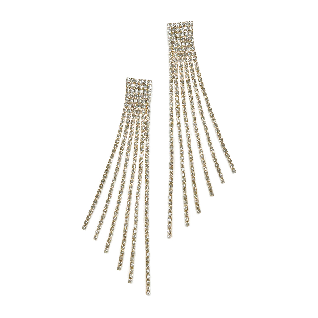 Introducing our Gold Abstract Rhinestone Fringe Earrings, a mesmerizing accessory that effortlessly combines modern style...