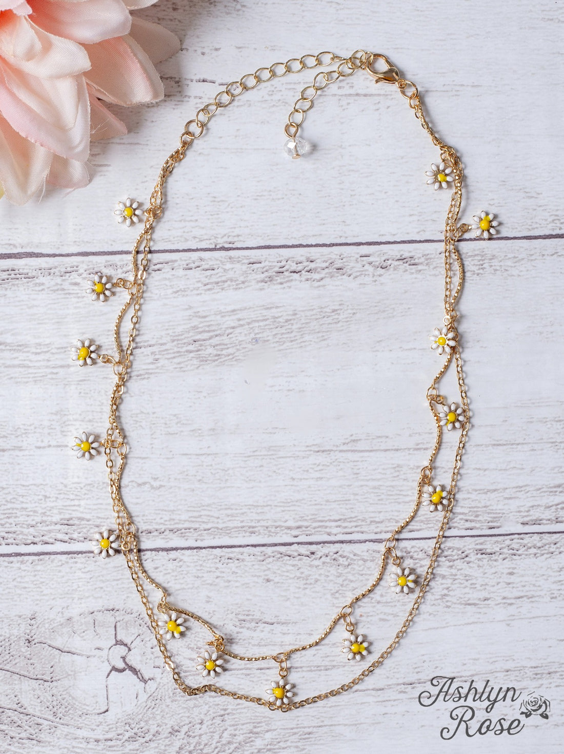 MY ONLY SUNSHINE GOLD DAISY PENDANT DOUBLE CHAIN NECKLACE