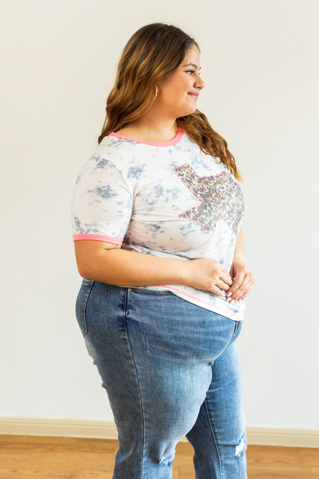 Looking for a basic top with a twist? The Leopard Texas on Marble & Pink Ringer Tee is the perfect pick. With its fun pattern and stylish ringer detailing, this top is sure to add some personality to your wardrobe. Plus, show off your state pride with the adorable leopard print Texas design.