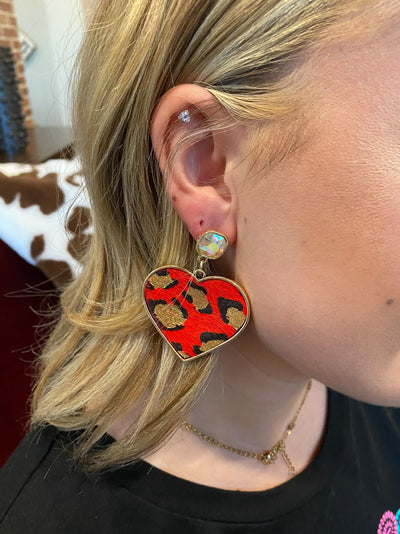 Don't Go Breaking My Heart Gold Leopard Stud Earrings, Red