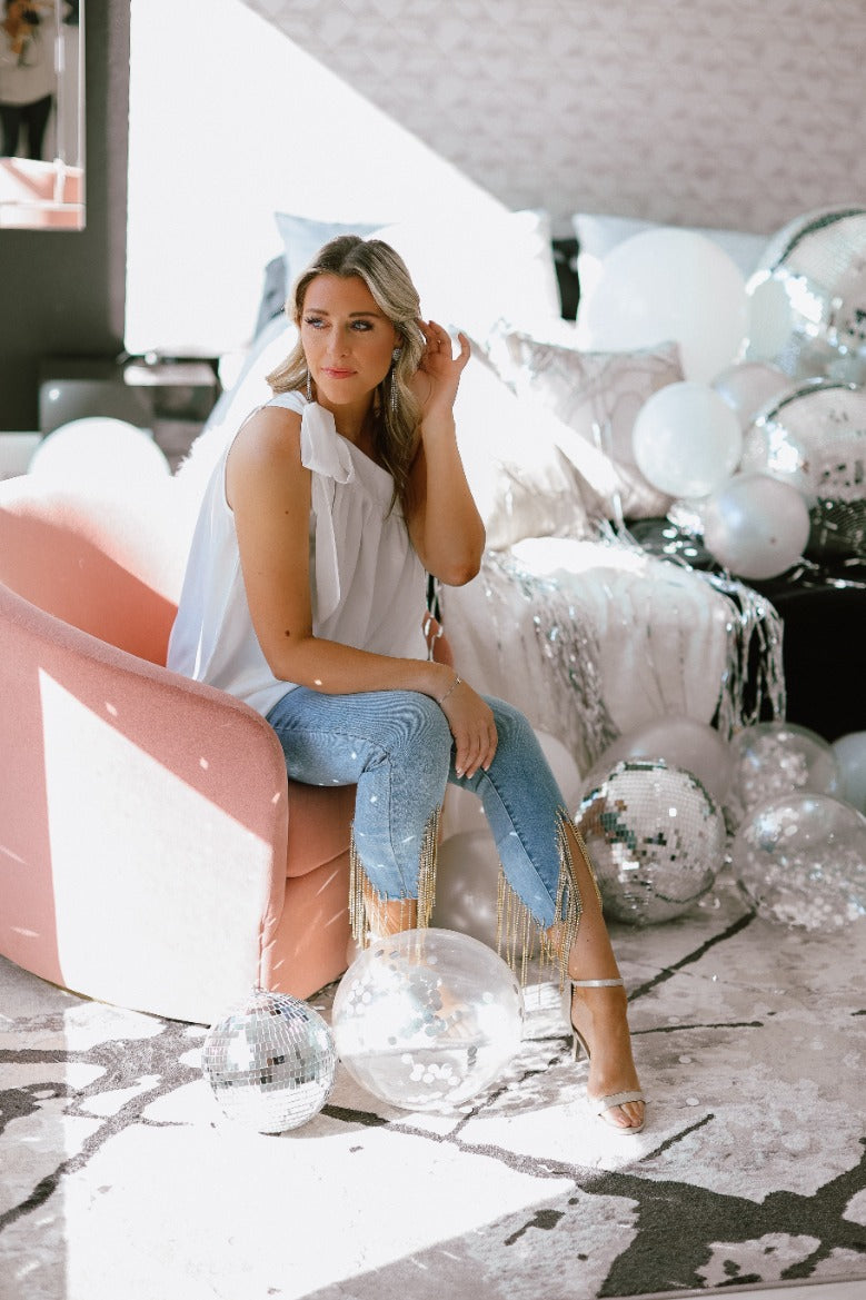 Our 'Pure Elegance' top is a dreamy and romantic piece perfect for any special event. This top features charming tie shoulders that add a touch of whimsy and elegance to your look. Whether you're wearing if for everyday or going out, this top will make you feel like the epitome of pure elegance.