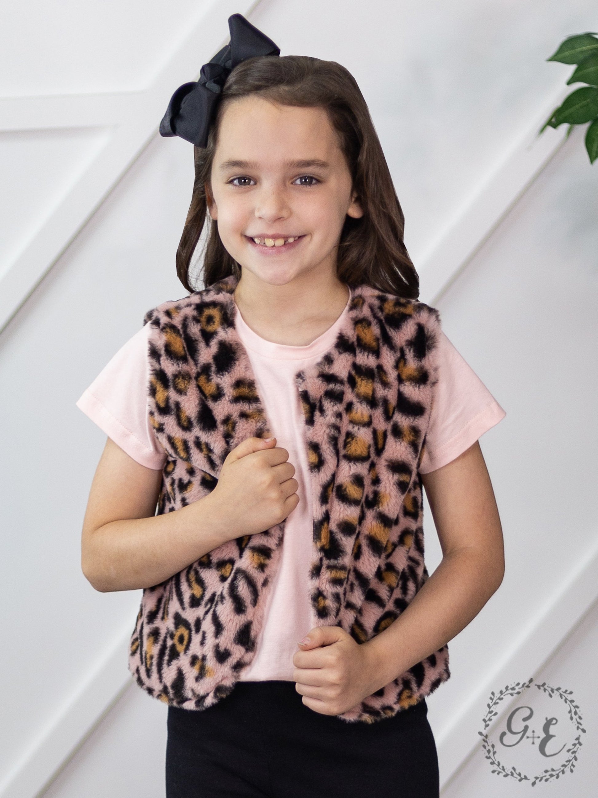 Girls' My Wild Side Faux Fur Vest, Leopard
