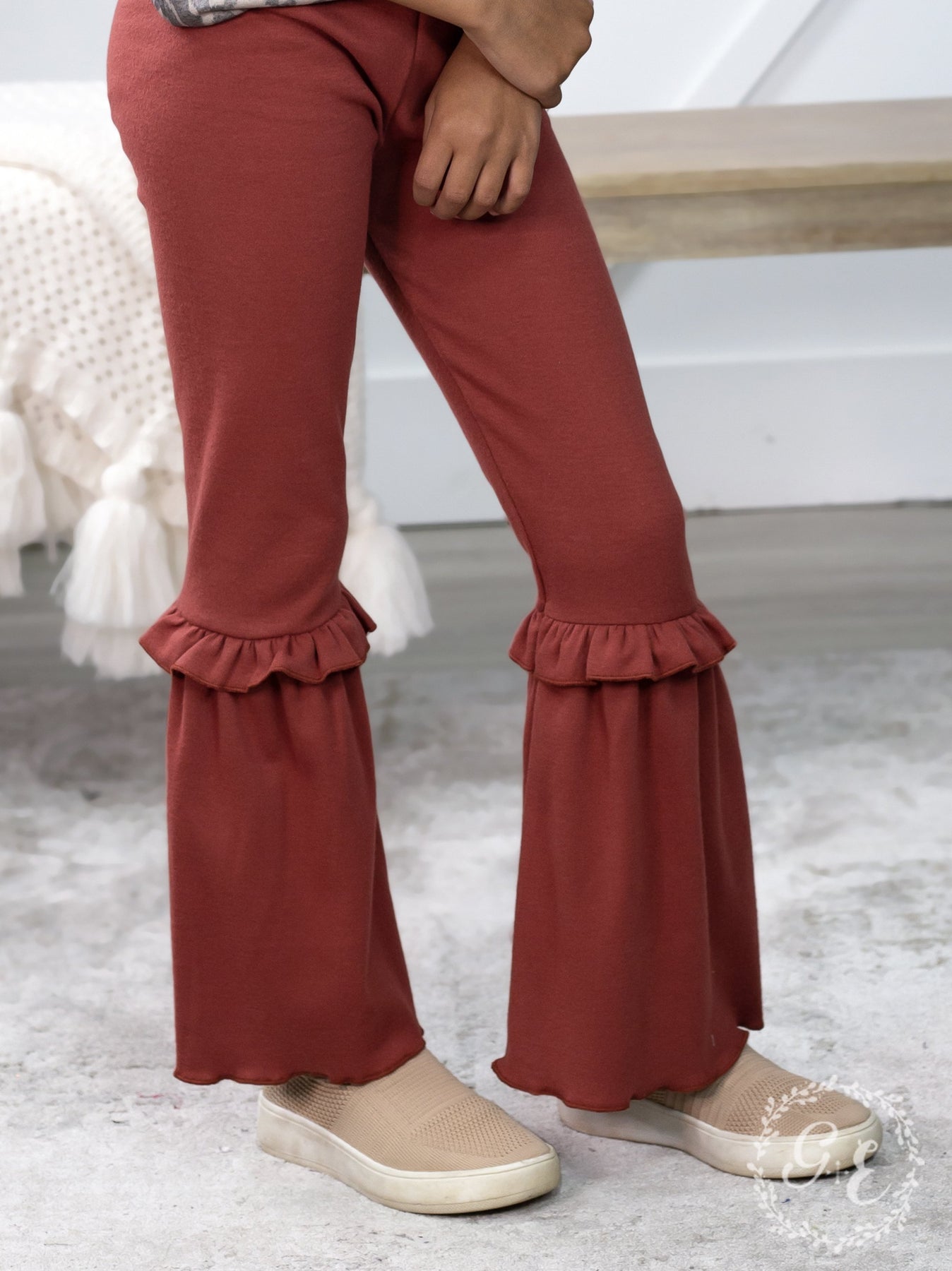 Girls Ruffle My Feathers Flare Pants with Ruffle, Mauve