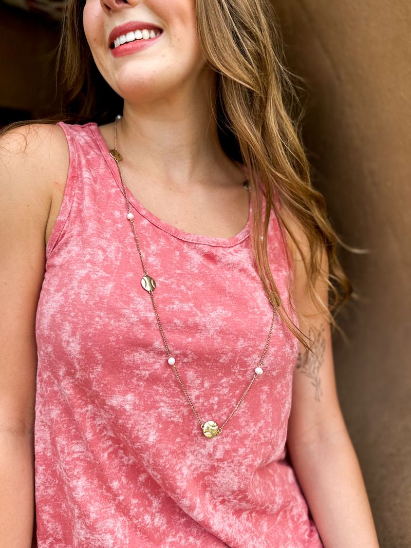 Gold Chain Baseball Charm Necklace with Pearl Beads