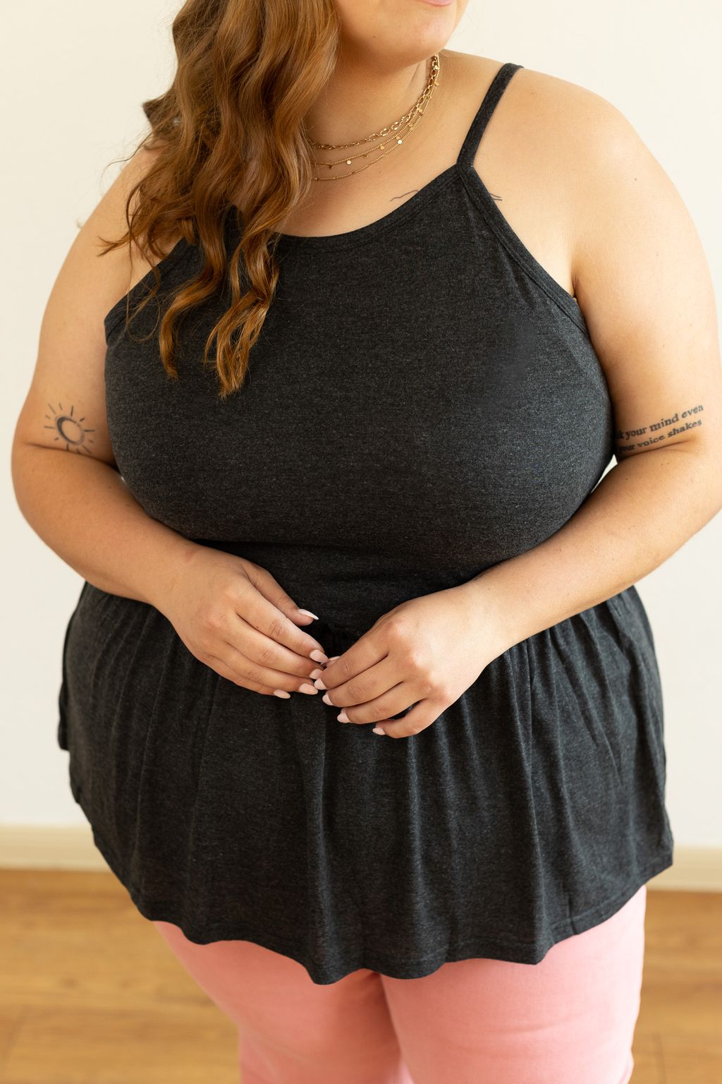 Amanda Tank Top With Ruffle Waist, Grey