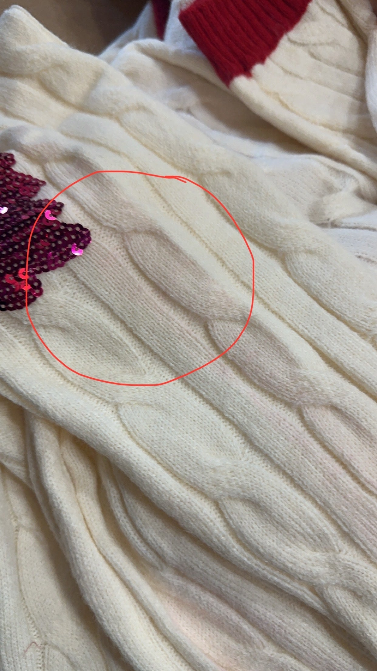 This product is labeled as "AS IS" because the red color may bleed onto the ivory fabric. This fun, relaxed-fit cardigan features playful cowboy Santa patches and offers a comfortable, flexible fit. Its lightweight design and button closure add a classic touch. Please note that all "AS IS" items are final sale; no returns or exchanges will be accepted.