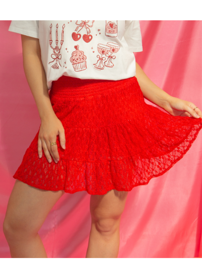 Lace Skirt with Shorts, Red