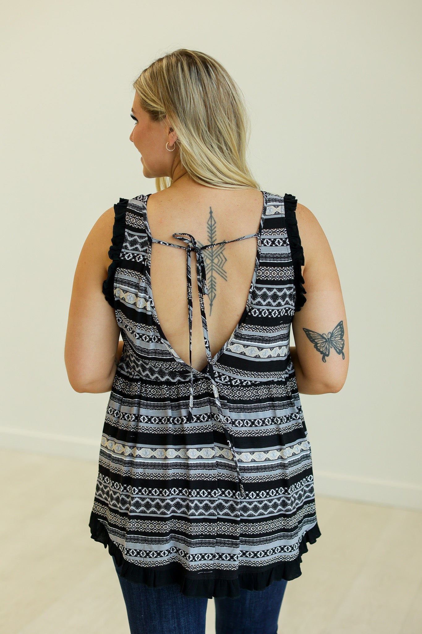 Giving us all the Sunday funday vibes in this flirty summer tank. Pair with jeans and wedges for all your summer festivities.
