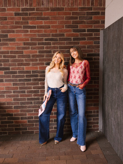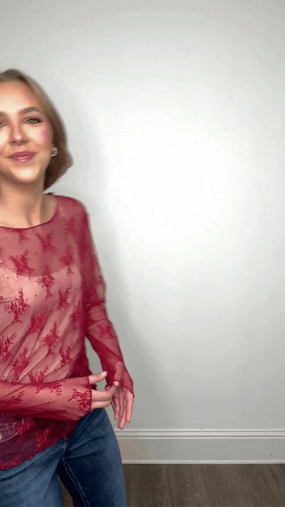 This lace long-sleeve top offers a relaxed, roomy fit with high-stretch fabric that moves with you. Featuring a classic crew neck and an unlined design, it's perfect for layering or pairing with your favorite pieces for a comfortable, stylish look.
