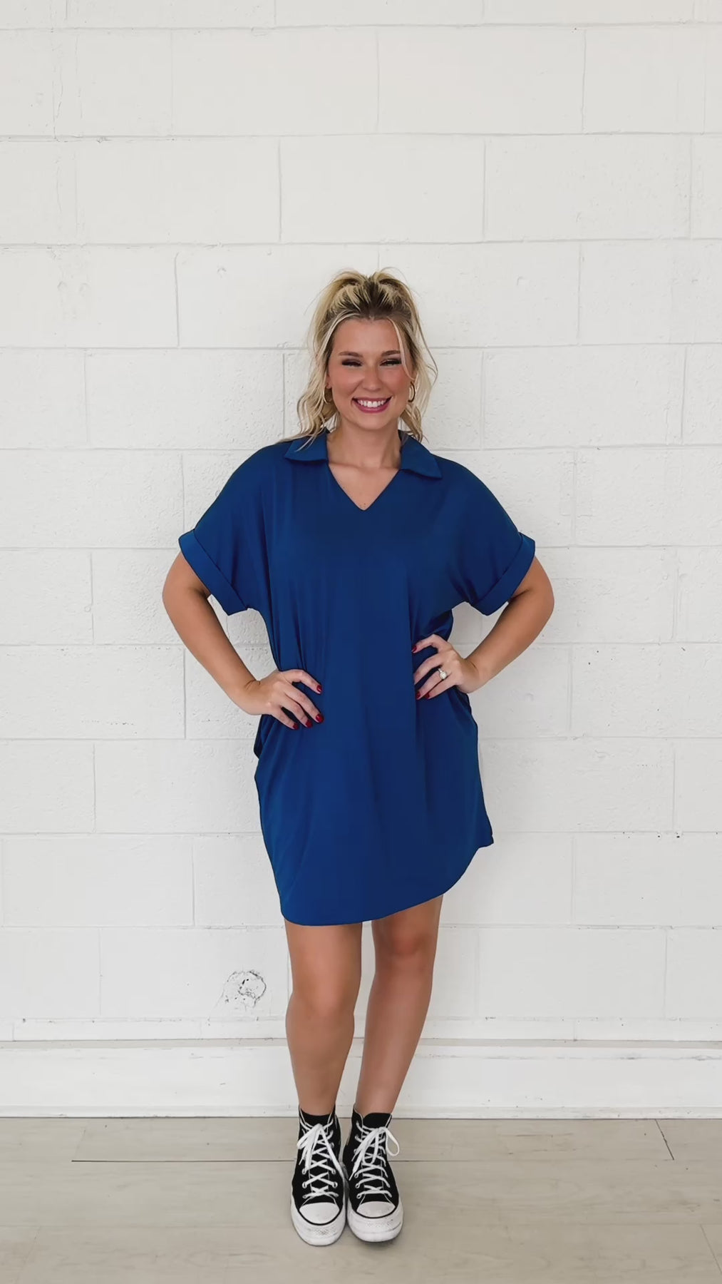 This high-stretch dress features a relaxed fit with a flattering V-neck design. Unlined for a lightweight feel, it offers comfort and flexibility for all-day wear. With pockets for added convenience, it's the perfect balance of style and practicality.