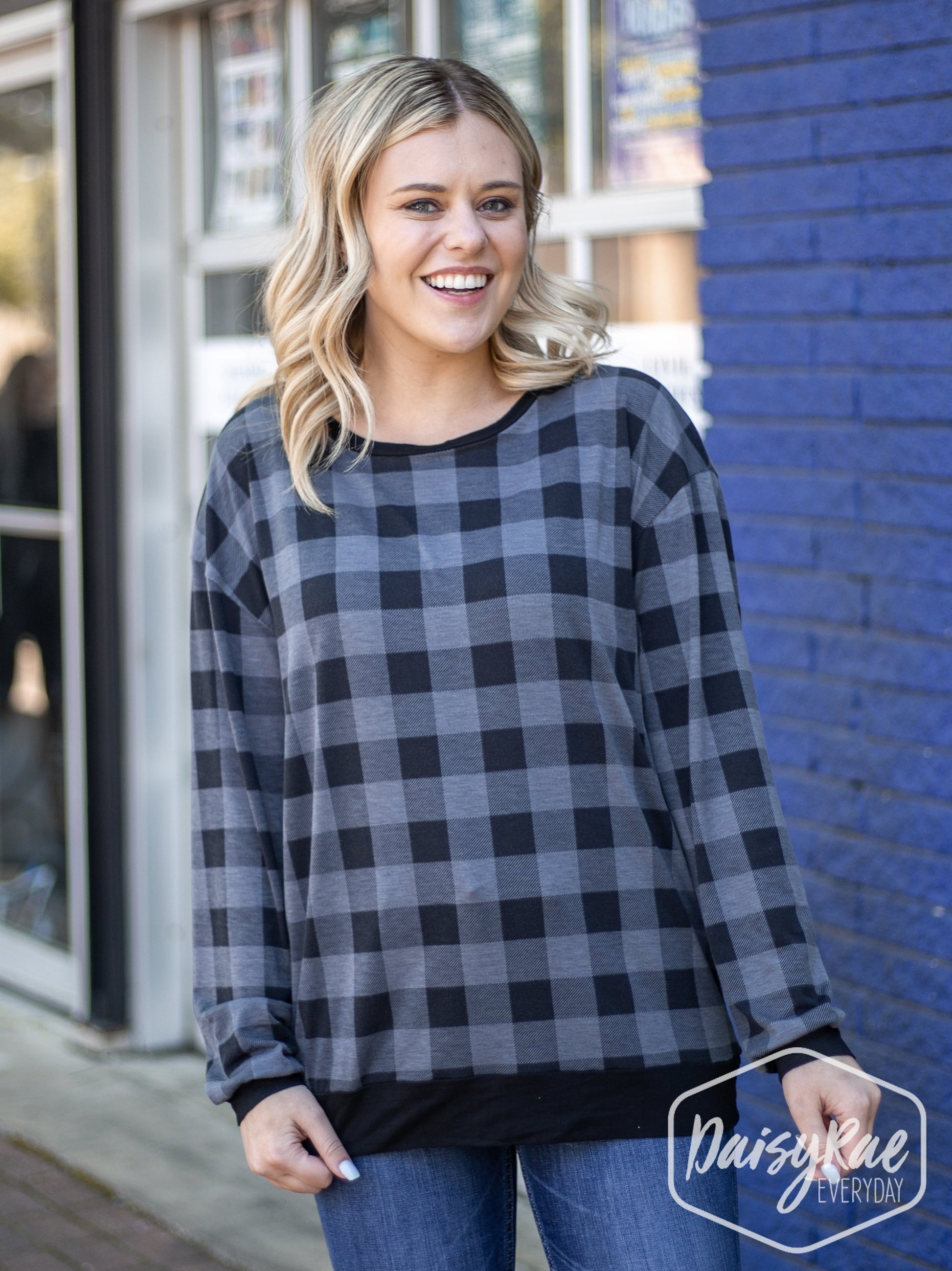 Plaid With Me Long Sleeves T-Shirt, Grey
