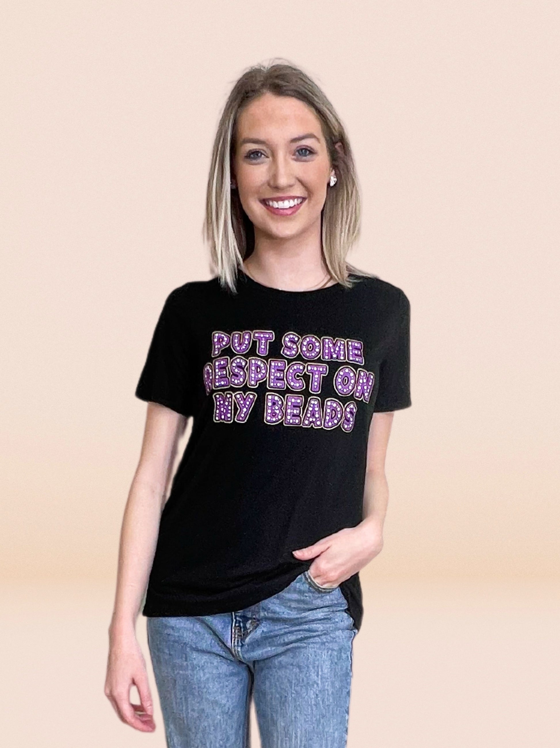 Put Some Respect On My Beads on Black Crewneck Tee