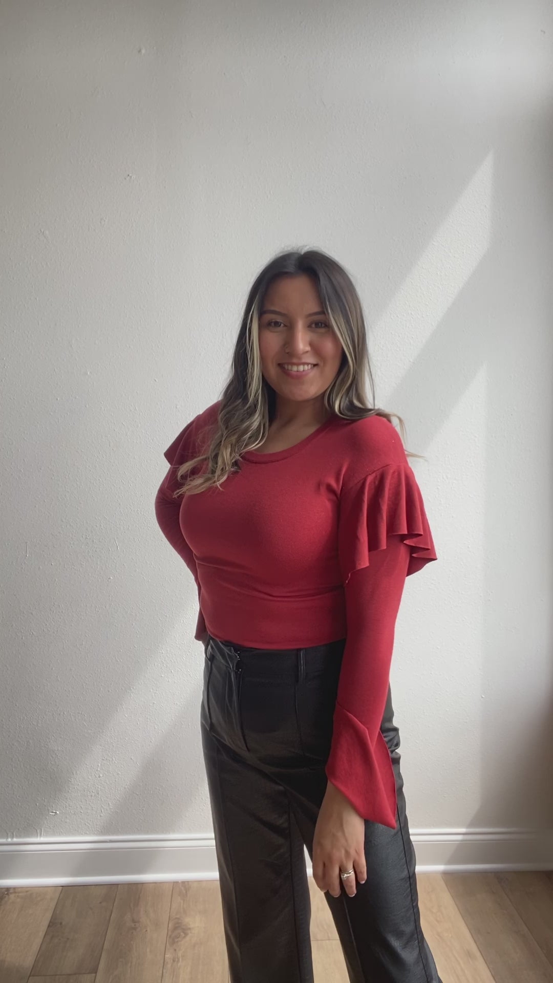 Rustic Shimmer Bodysuit With Ruffle Shoulder Sleeve