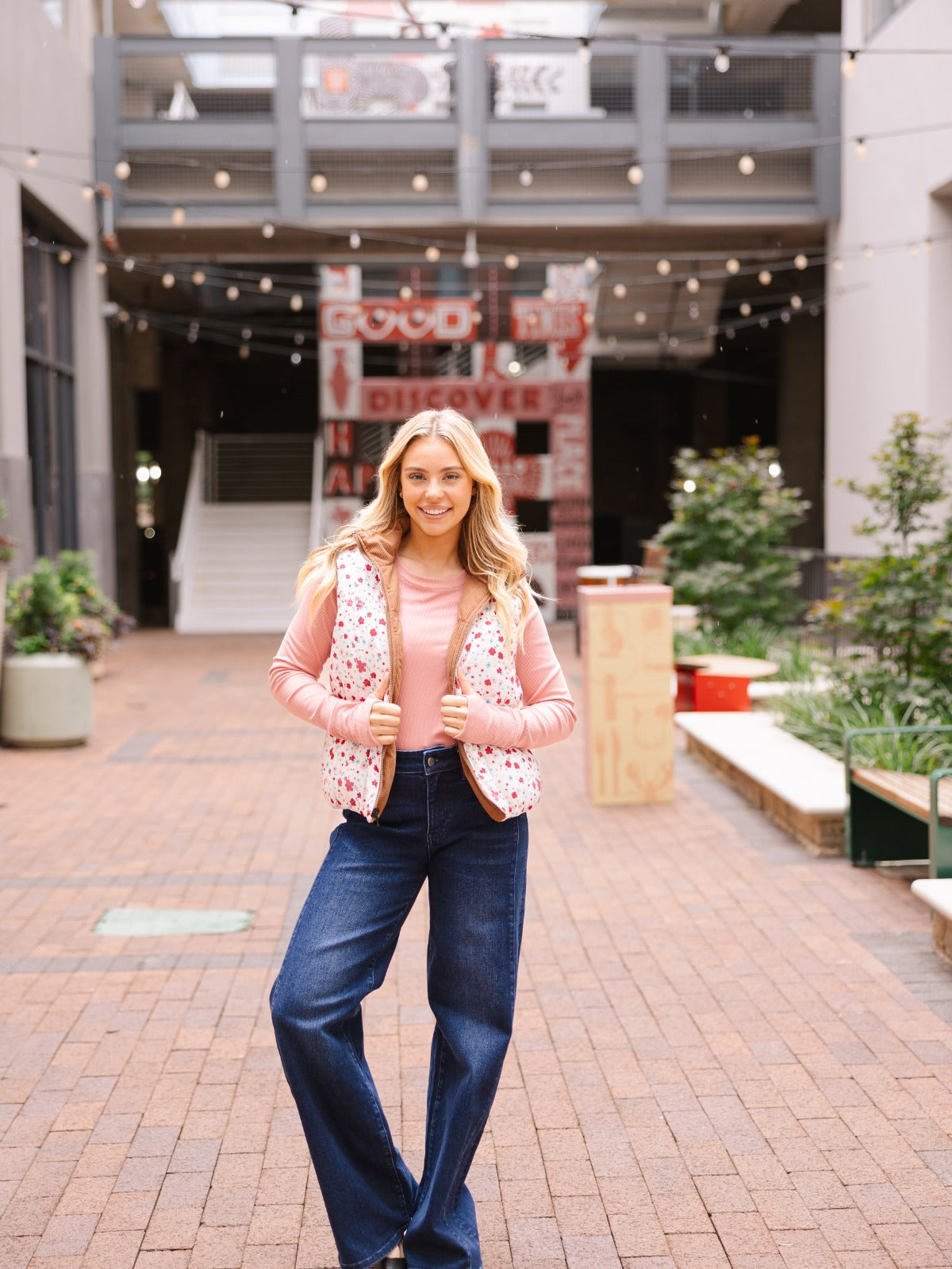 Switch up your style in seconds with The Gillian Reversible Puffer Vest. One side keeps it classic with a rich solid tone, while the other brings the fun with a bold floral print. Designed with a relaxed fit, light stretch, and full lining for warmth — plus front zip and pockets on both sides for added function. It's your go-to vest for layering and making a statement, whichever side you choose.