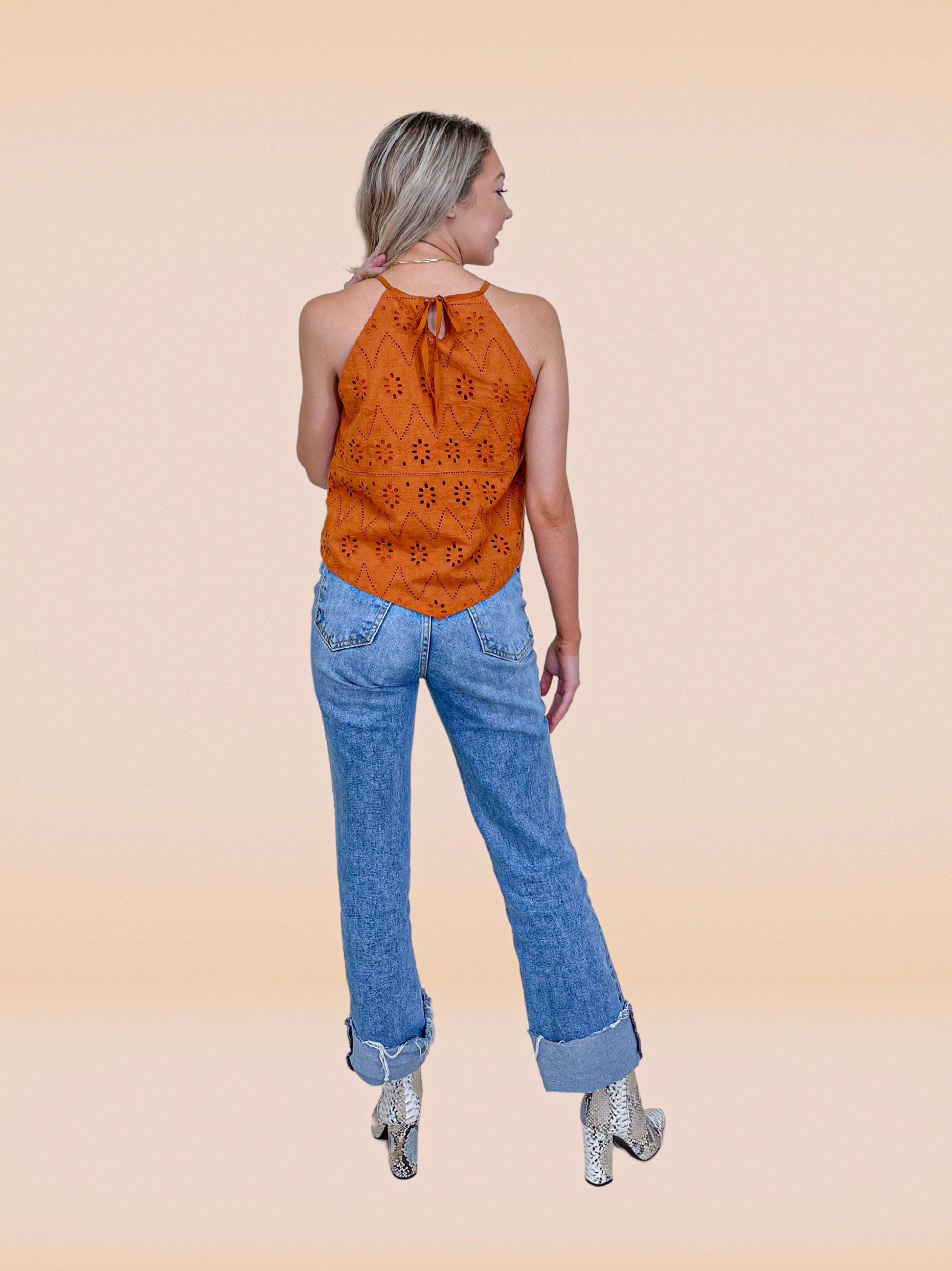 The Yala Top, Lightweight and breathable cotton keeps you cool and comfortable while maintaining style. Available in Rust, White, Pink, and Black.