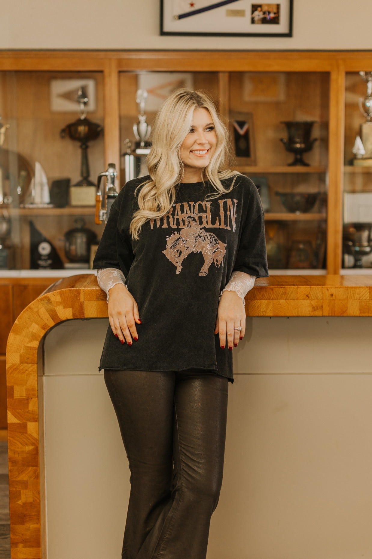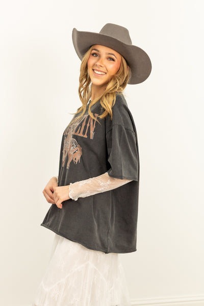 Wranglin' on Black Tee